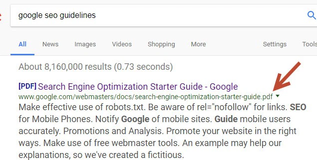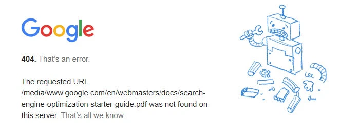 As of this writing, the old URL for the .pdf with a 404 error is still what shows up as the #1 search result for “Google SEO guide”, but that probably won’t last much longer. Or maybe it will?