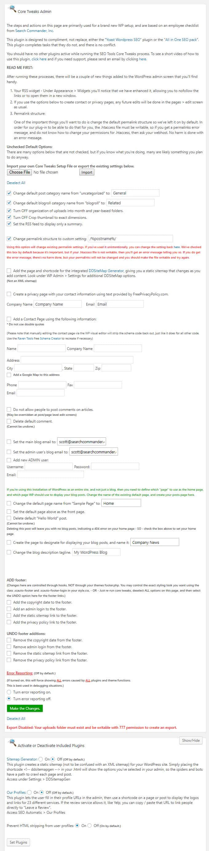 This free plugin was based on Scott Hendison’s checklist of manual tasks needed, when setting up new WP sites. Core Tweaks WP is hosted at WordPress.org